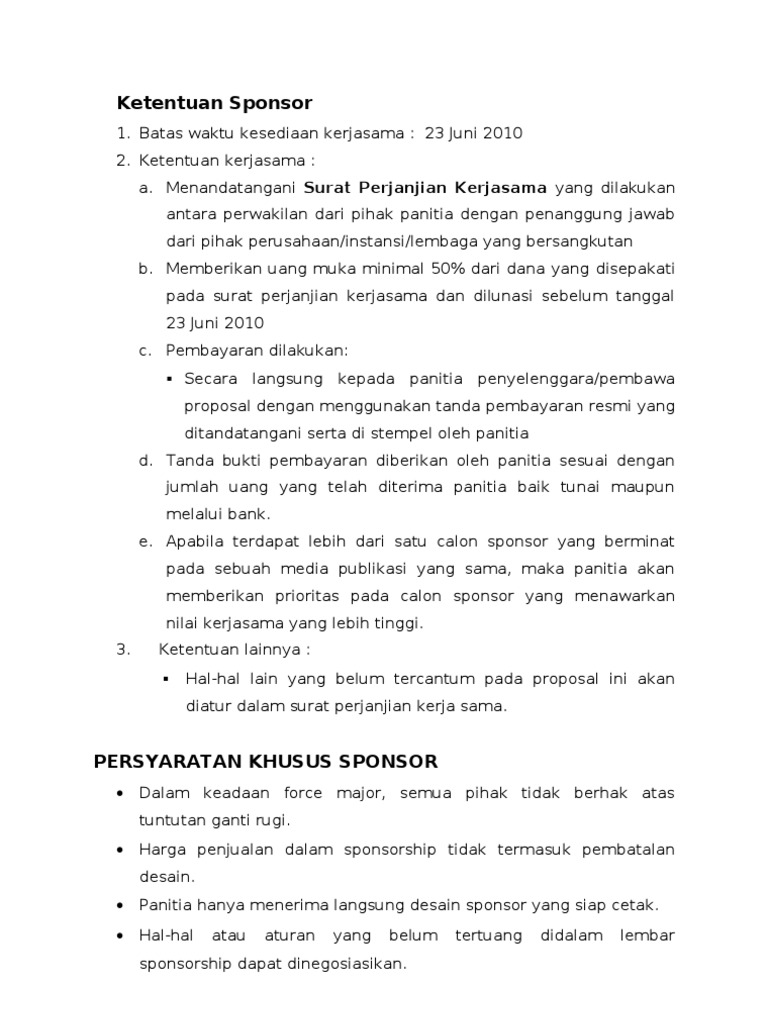 Contoh Surat Kerjasama Sponsorship Yang Baik Dan Benar