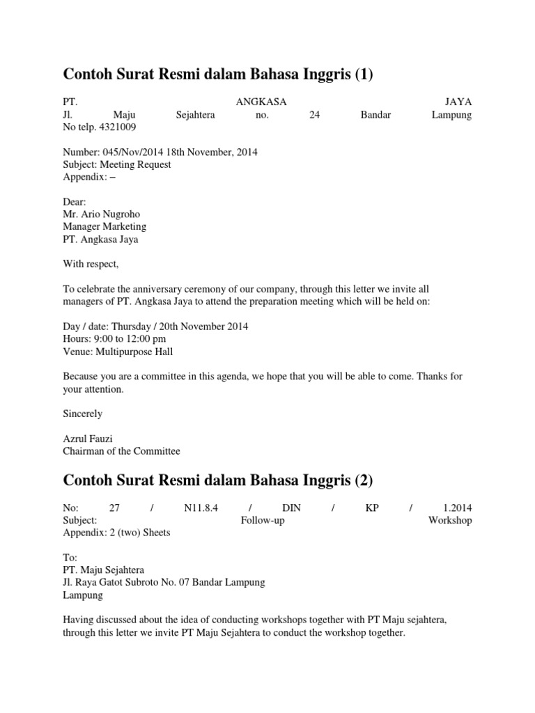 Surat Resmi Dalam Bahasa Inggris Dan Indonesia Rumah Xy