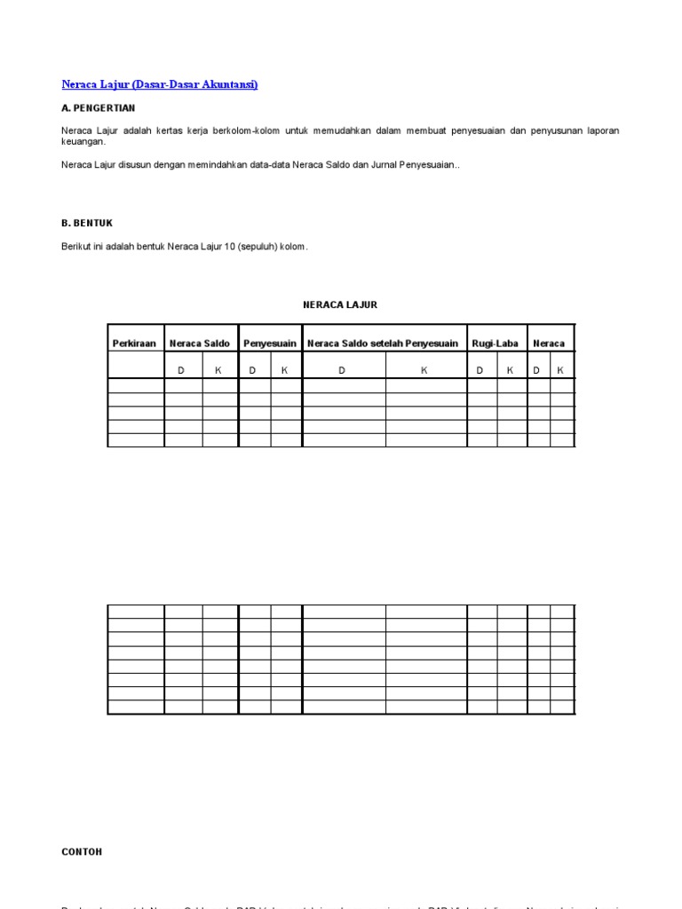 Materi Lengkap Neraca Lajur Beserta Conthonya Accounting