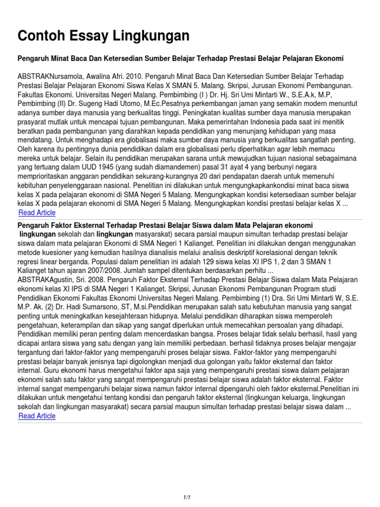 Contoh Essay Lingkungan Read Article