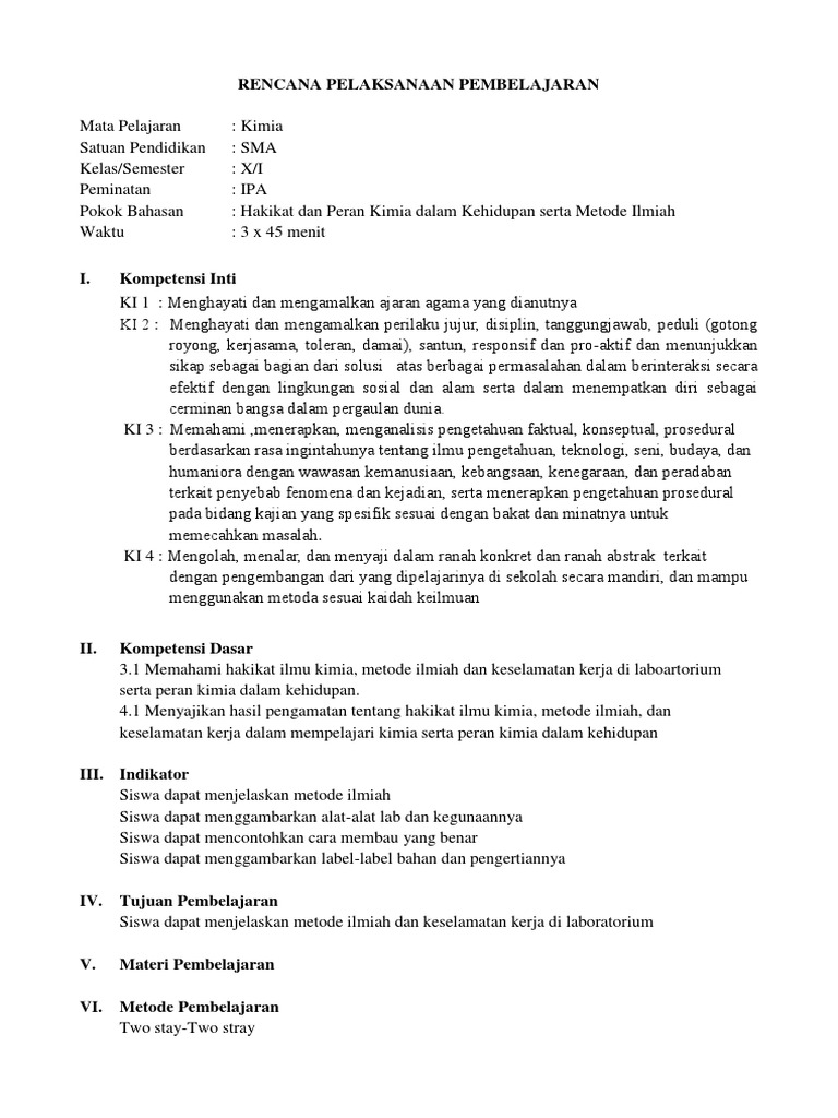 Rpp Hakikat Dan Peran Kimia Dalam Kehidupan Serta Metode