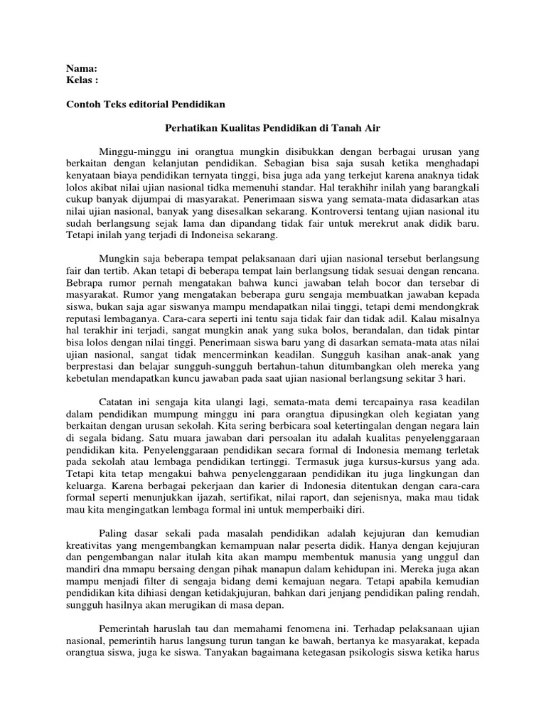 Contoh Teks Editorial Pendidikan Docx