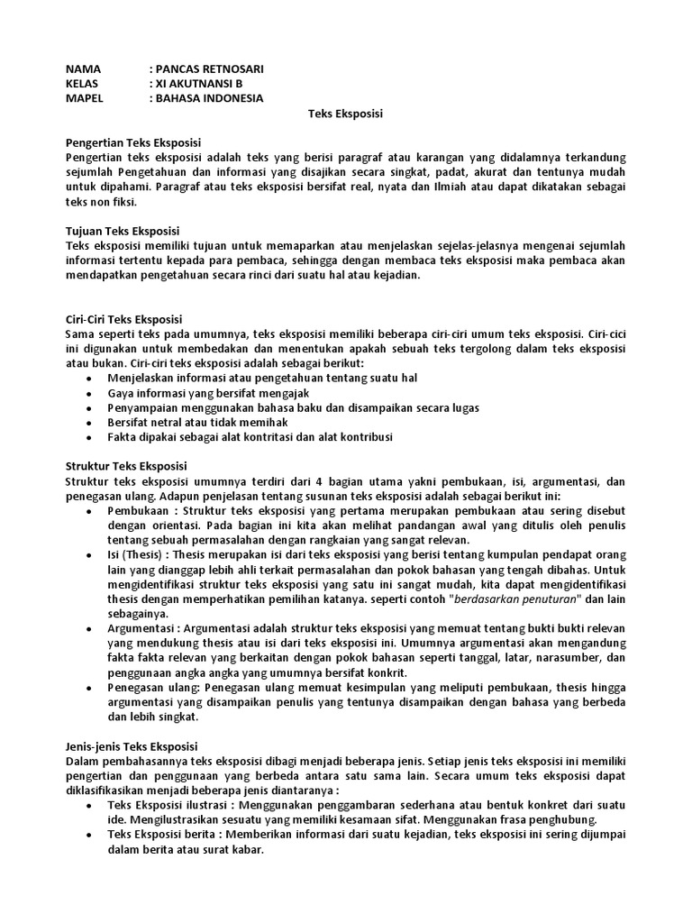 Contoh teks eksposisi singkat tentang pendidikan 13395824 tesis. Pada masing masing contoh didalamnya kami akan tunjukkan bagian bagian teks eksposisi yang mengacu pada struktur teks eksposisi.