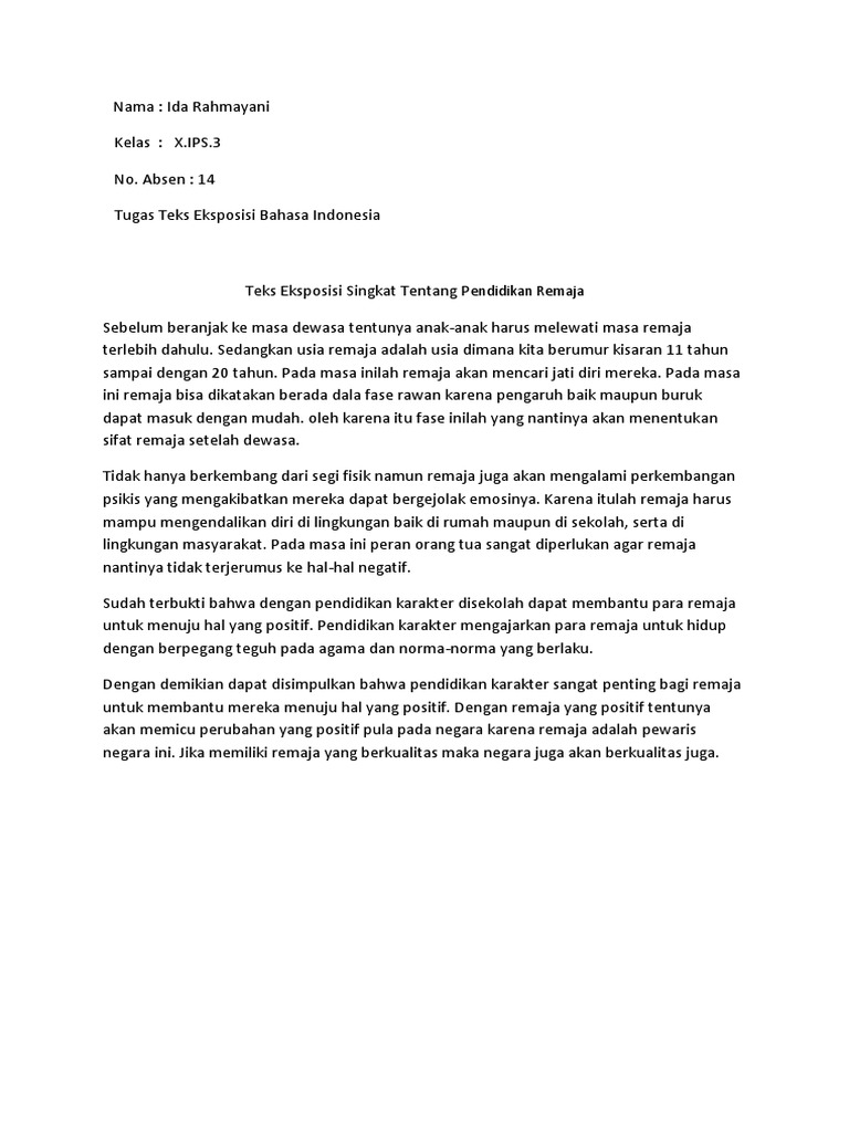 Contoh Teks Eksposisi Remaja Pendidikan Karakter Contoh Two