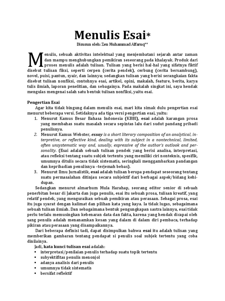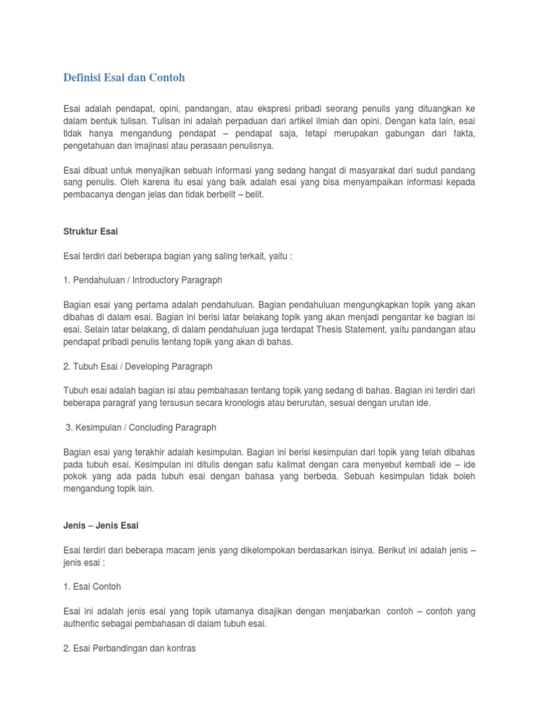 Contoh Essay Dan Cara Membuat Essay Pdf Doc Update