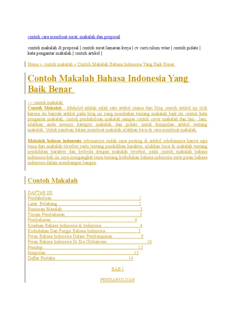 Contoh Makalah Bahasa Indonesia Yang Baik Benar
