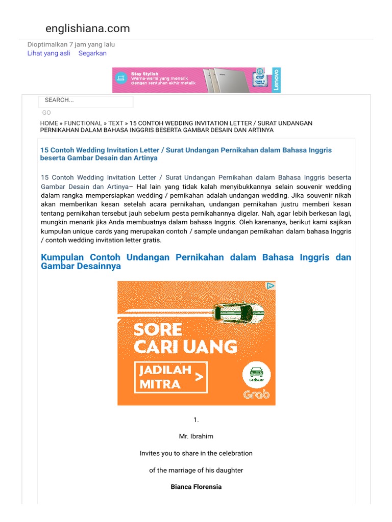 Contoh Undangan Pernikahan Islami Dalam Bahasa Inggris Dan