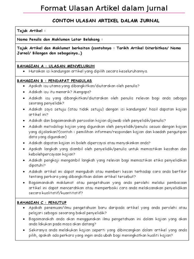 Doc Format Ulasan Artikel Dalam Jurnal Contoh Ulasan